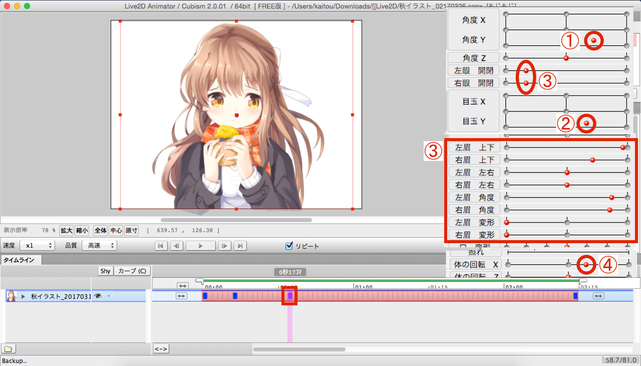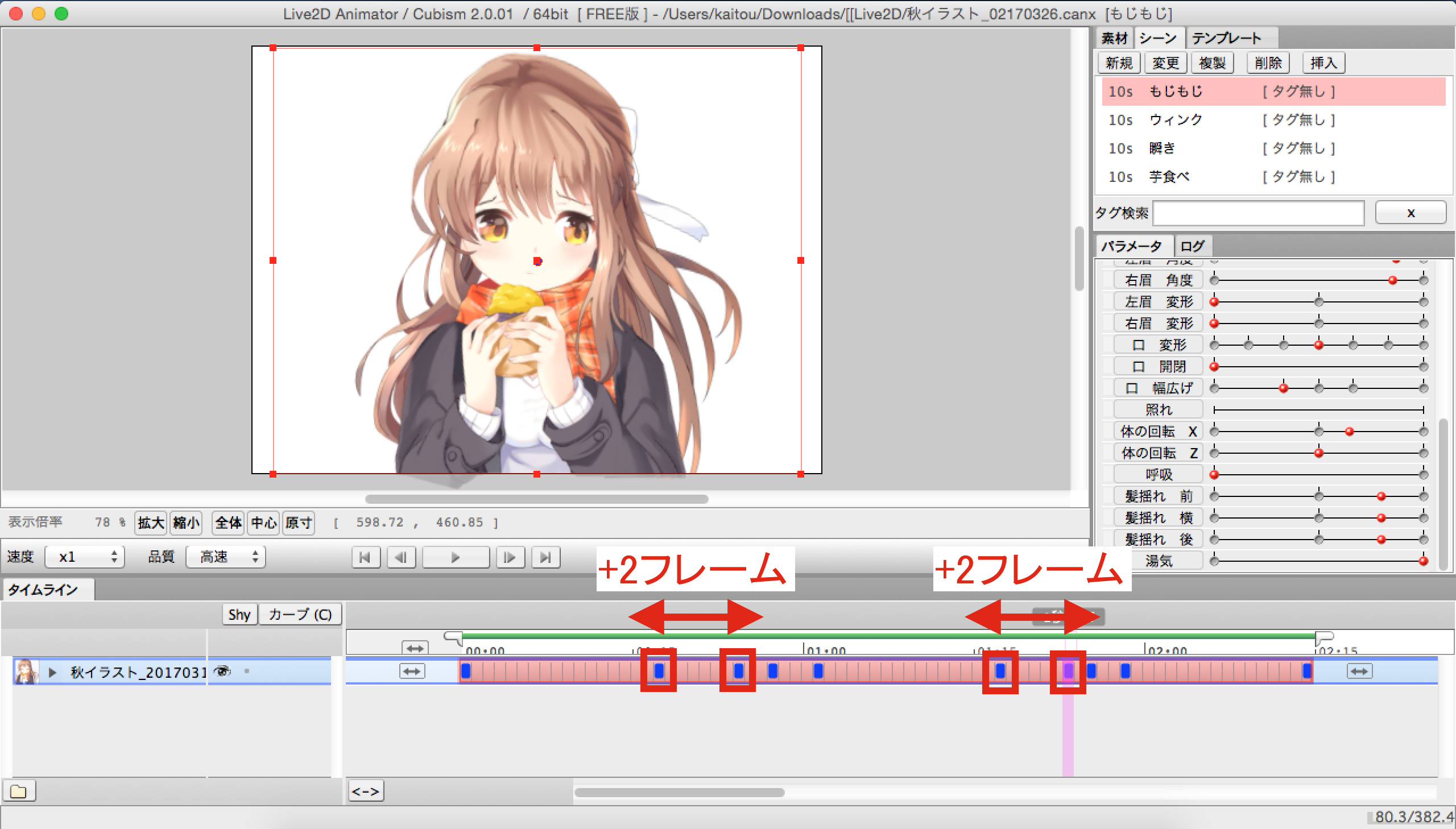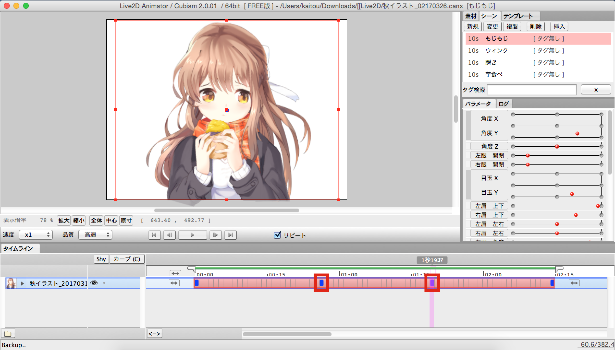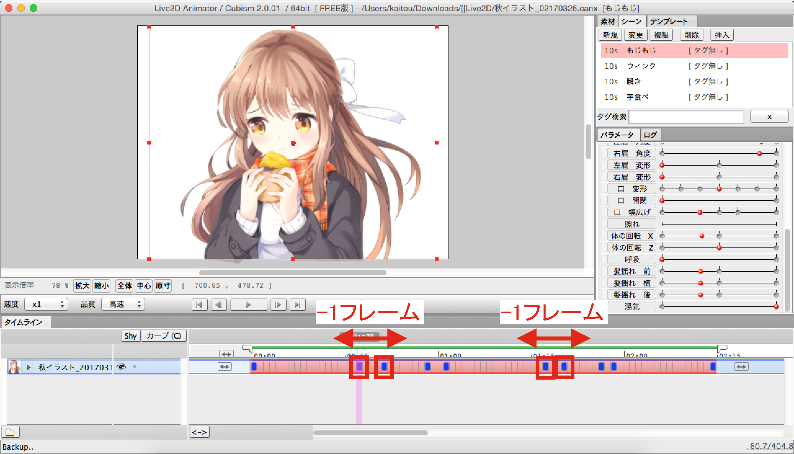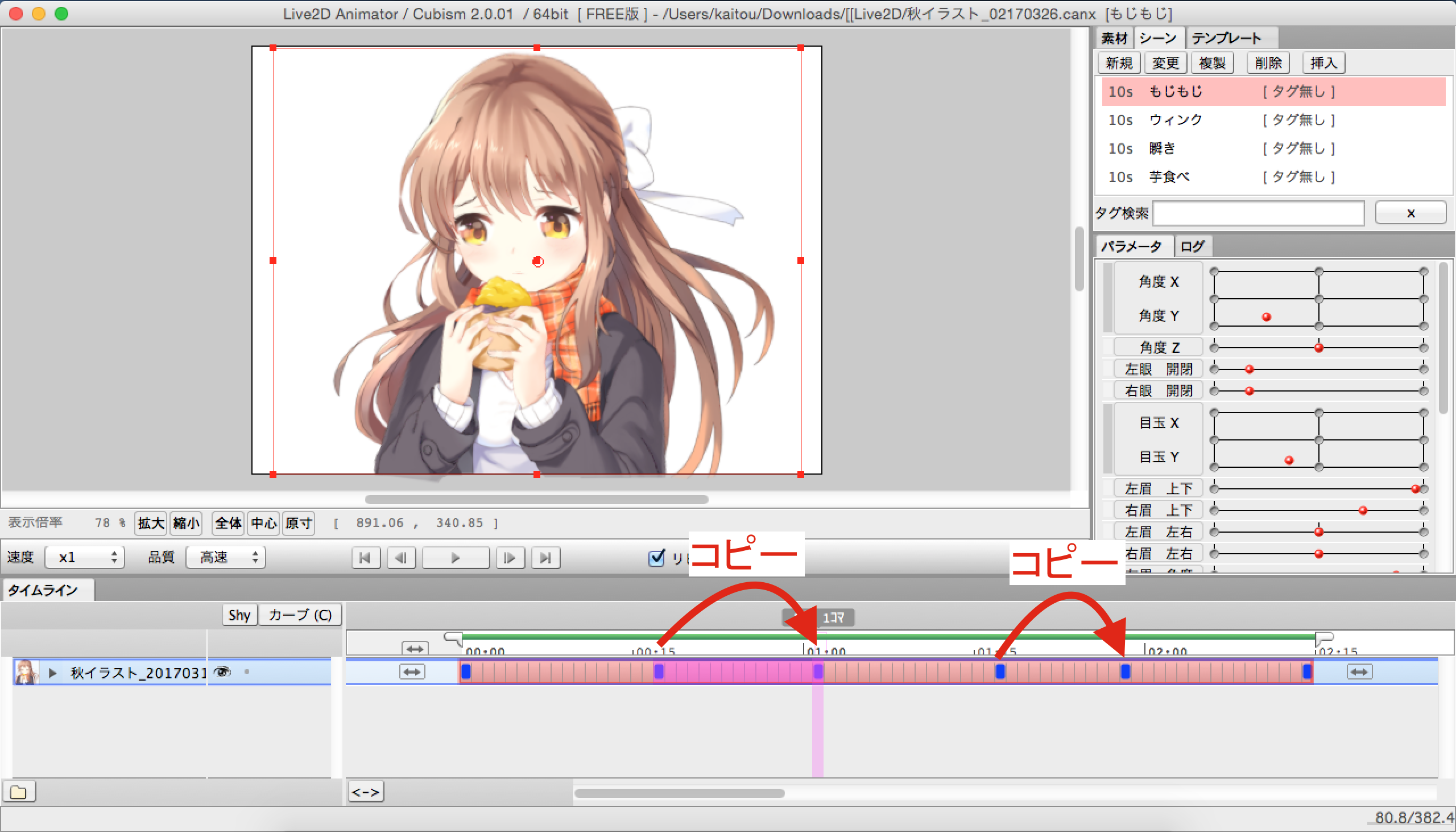 前回のpart42では、このイラストならではの焼き芋を食べるアニメーションを設定しました。