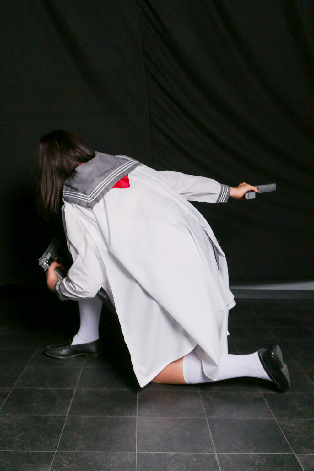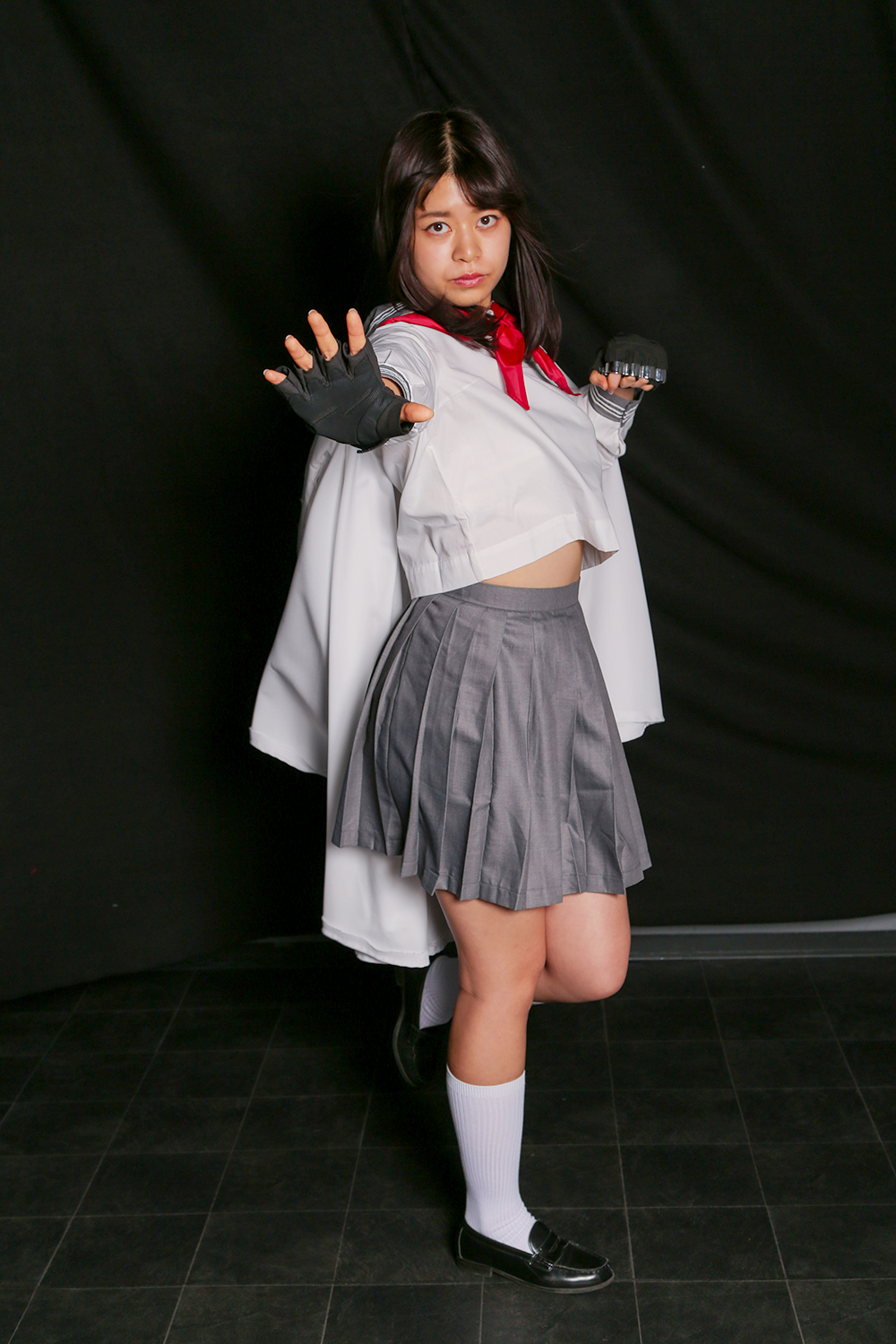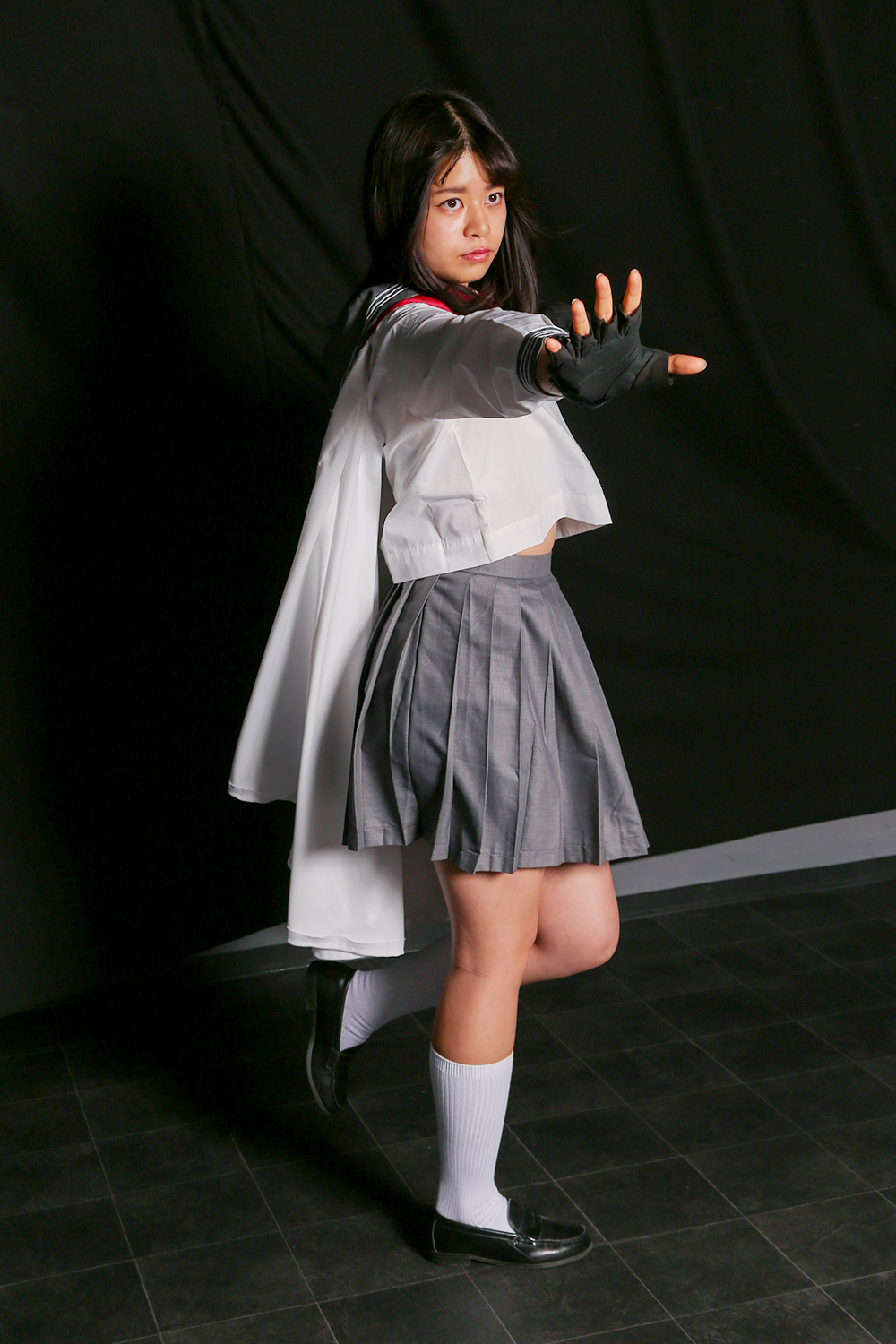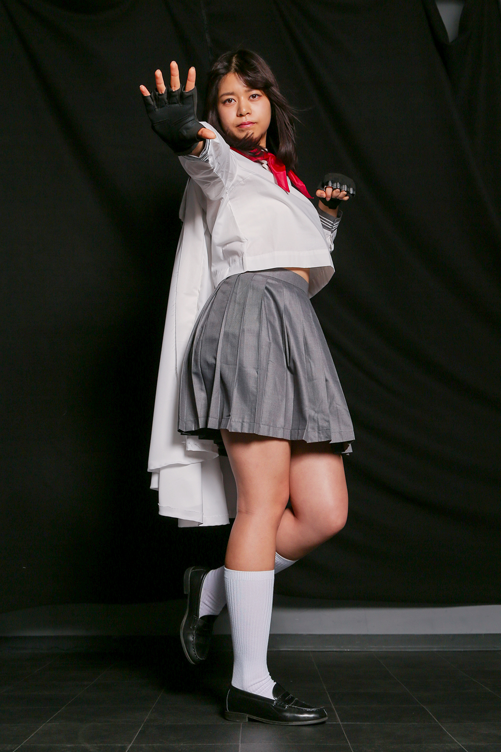 このポーズの後、相手を倒して「女だからってなめないでよね」って言いそう。「間合いと溜め」