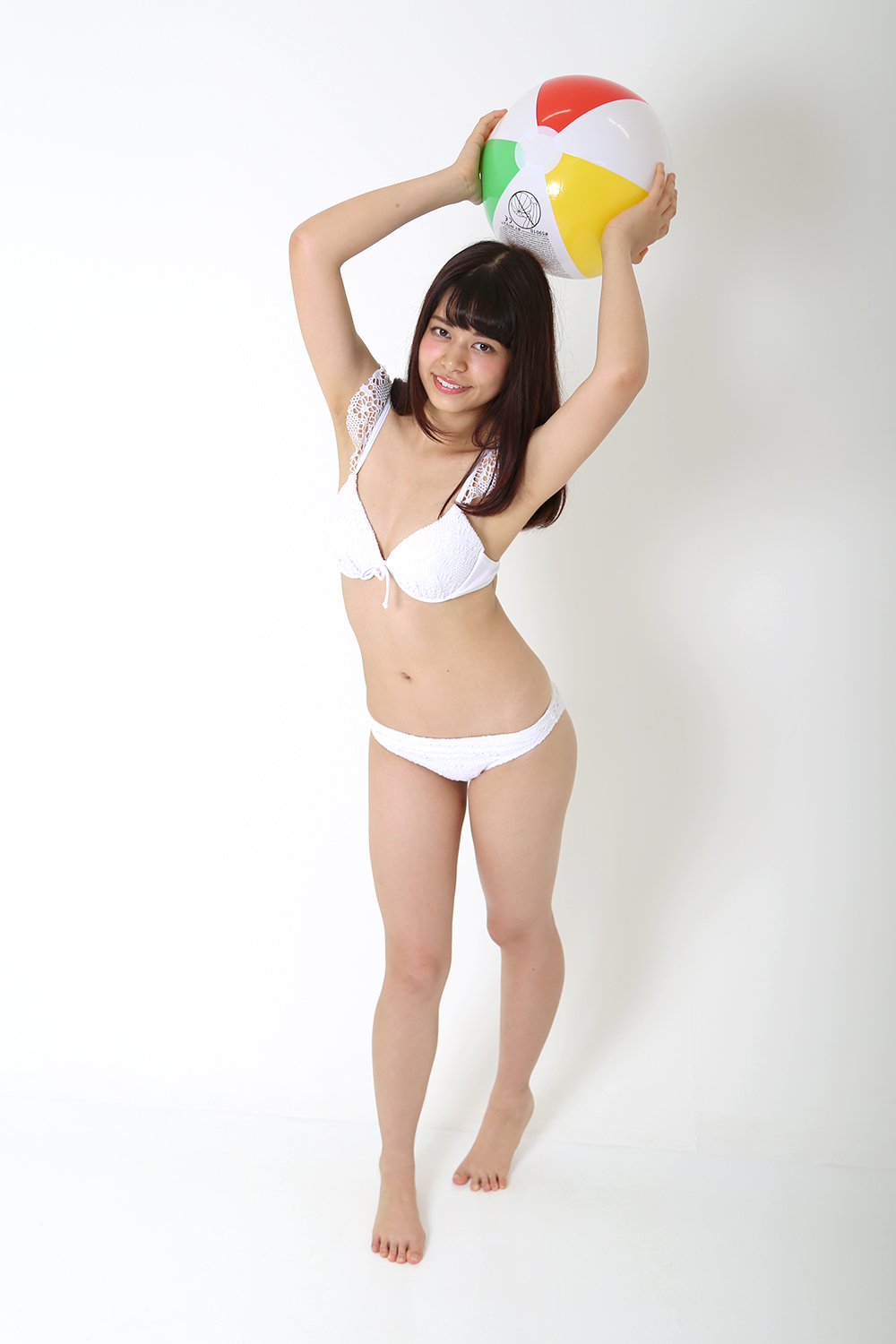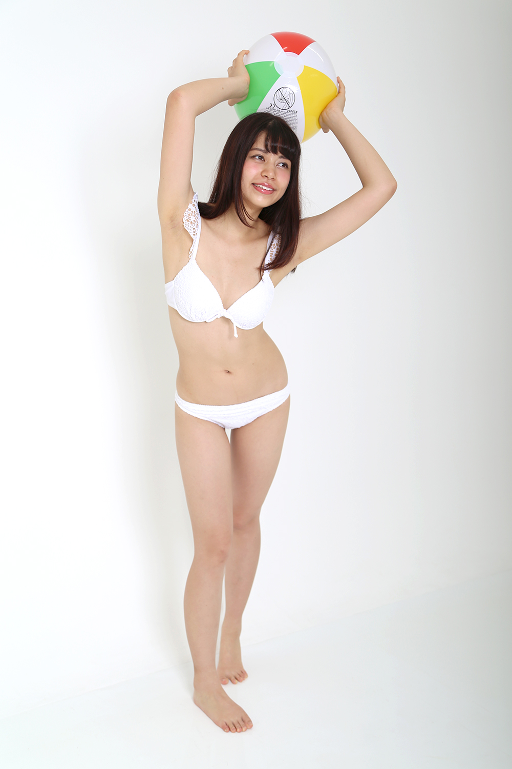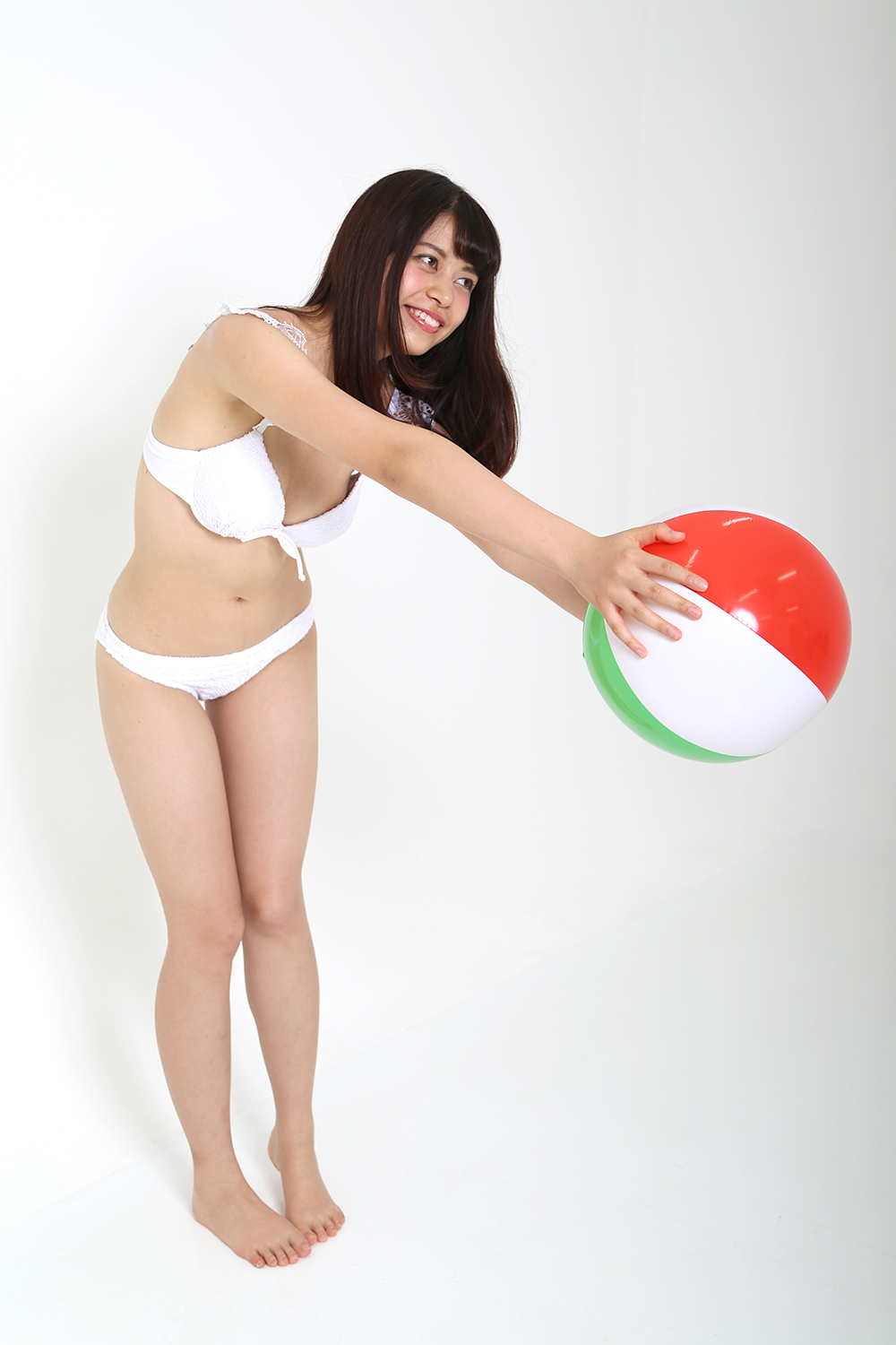 水着だけではなく、体育の球技シーンにもぜひ使ってください!「前かがみでビーチボールを腕とおなかではさむ」