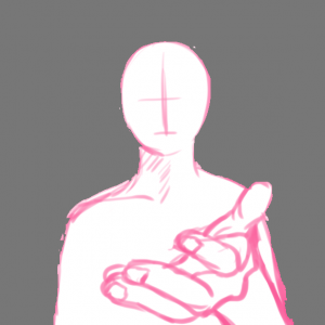手を差し出すような構図(手が大きく、キャラクターはやや小さい感じ)って