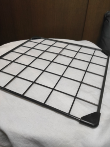 まずこのようにワイヤーネットを平たいところに寝かせます。