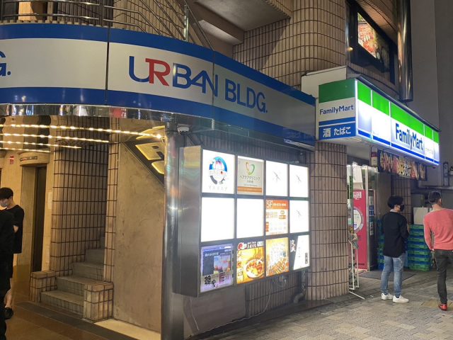 信号を渡るとファミリーマートとアーバンビルが目の前に!この、アーバンビルの地下です!