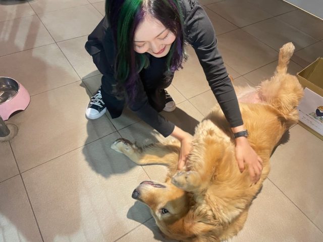 パテと遊ぶ私。すぐに仲良しに。