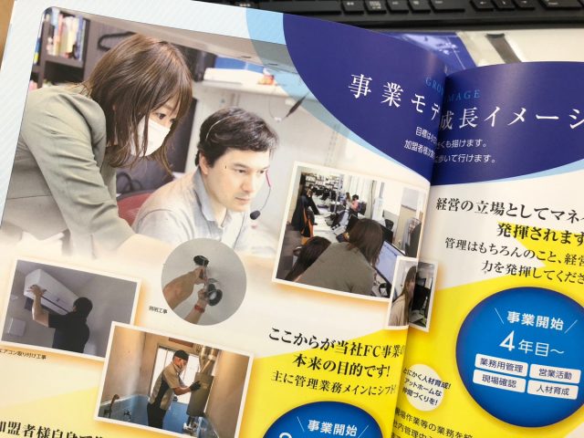 フランチャイズ事業の案内パンフレットのお写真。