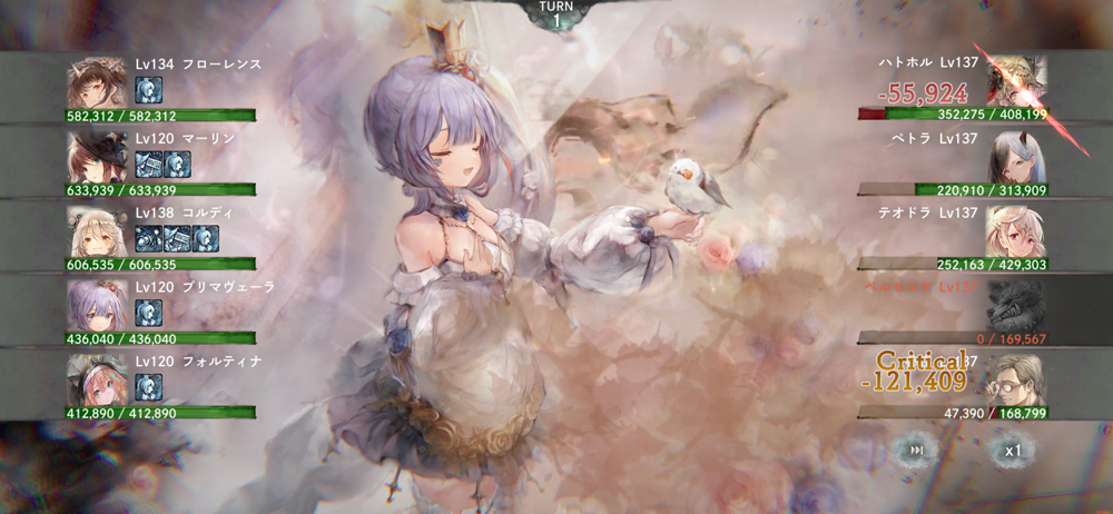 戦闘中のキャラが中央に大きく表示されるデザインなので、バトルに迫力が増し、