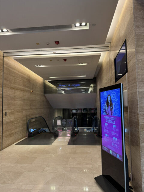 こちらのエスカレーターを降りるとホテルへ到着です。