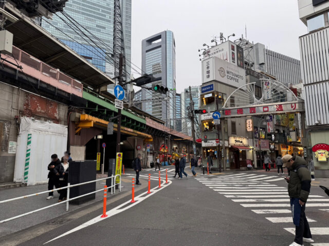 目の前に、新橋西口通りが見えてきます。
