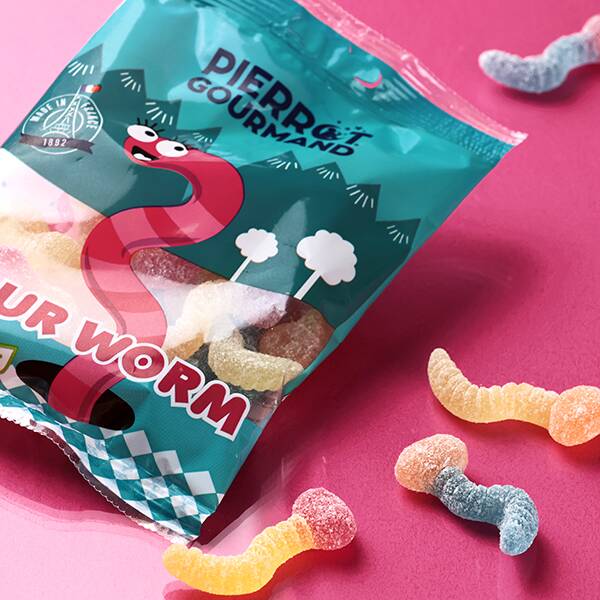 ですが、KALDIに売っている「ピエログルマンサワーワームグミ」