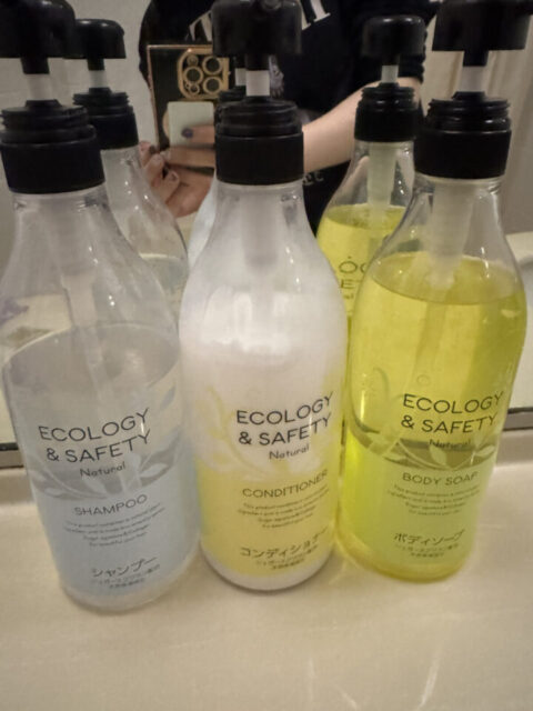 備え付けのアメニティは「ecology & safety」というブランドで、