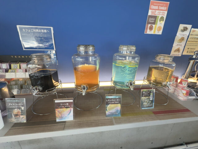 ドリンクは飲み放題で、電子レンジも使用可能。